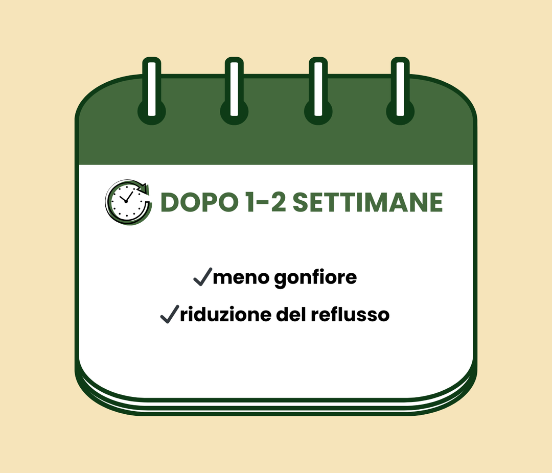 Ho quasi finito la prima scatola! Si sta rivelando utilissimo. Mi toglie immediatamente l'acido dalla bocca e anche lo stomaco sta meglio. Ancora non posso togliere l omeprazolo serale perch� il mio reflusso � molto forte, ma sto indubbiamente meglio. Grazie!