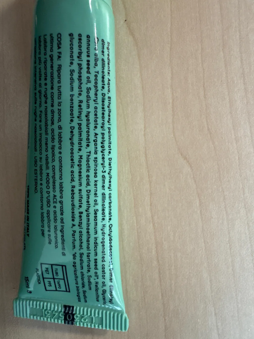 Filtri green, marine bamboo, cera d'api, acido ialuronico, vitamina E, estratto di mimosa, aloe, olio di oliva, olio di germe di grano