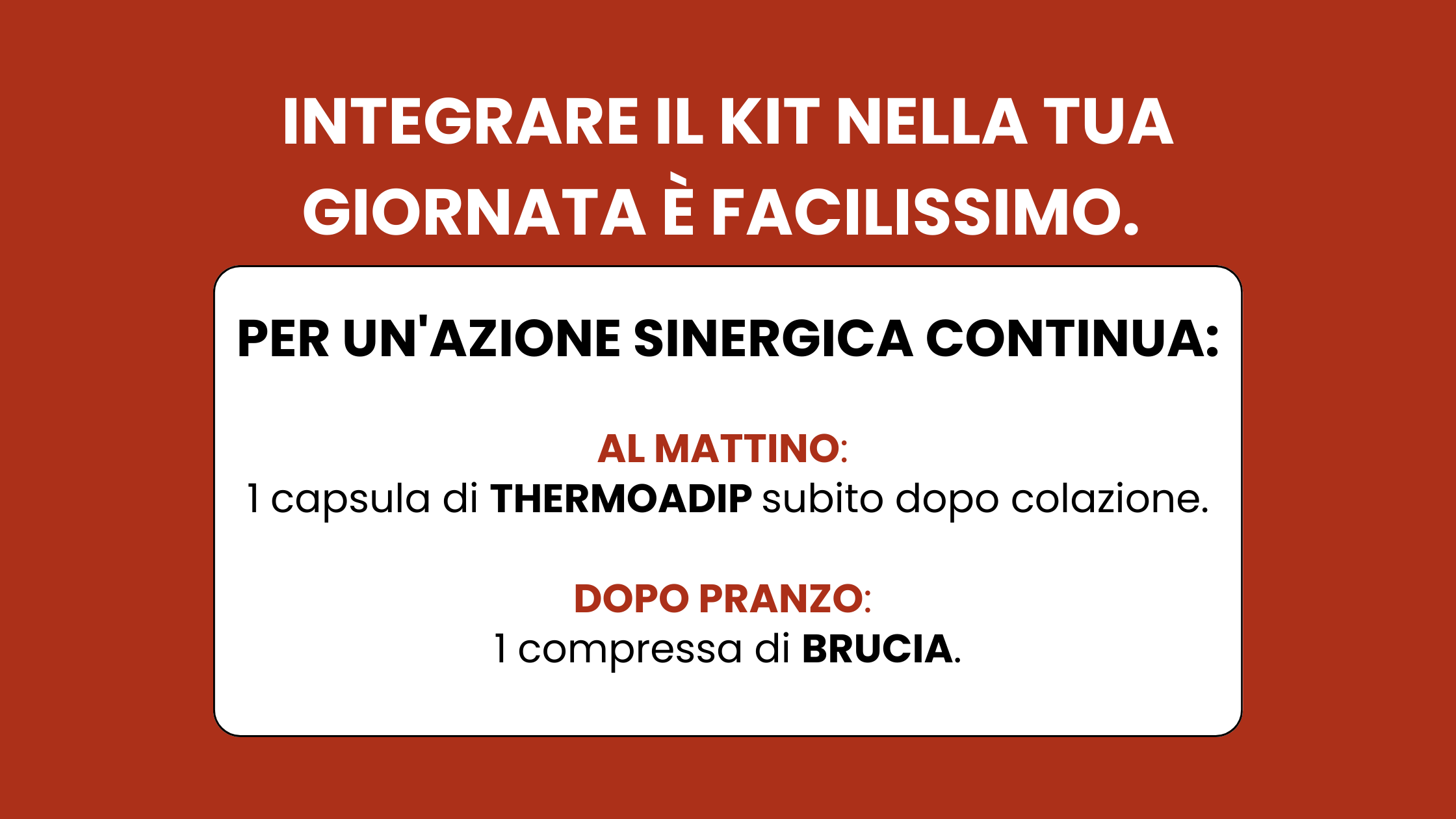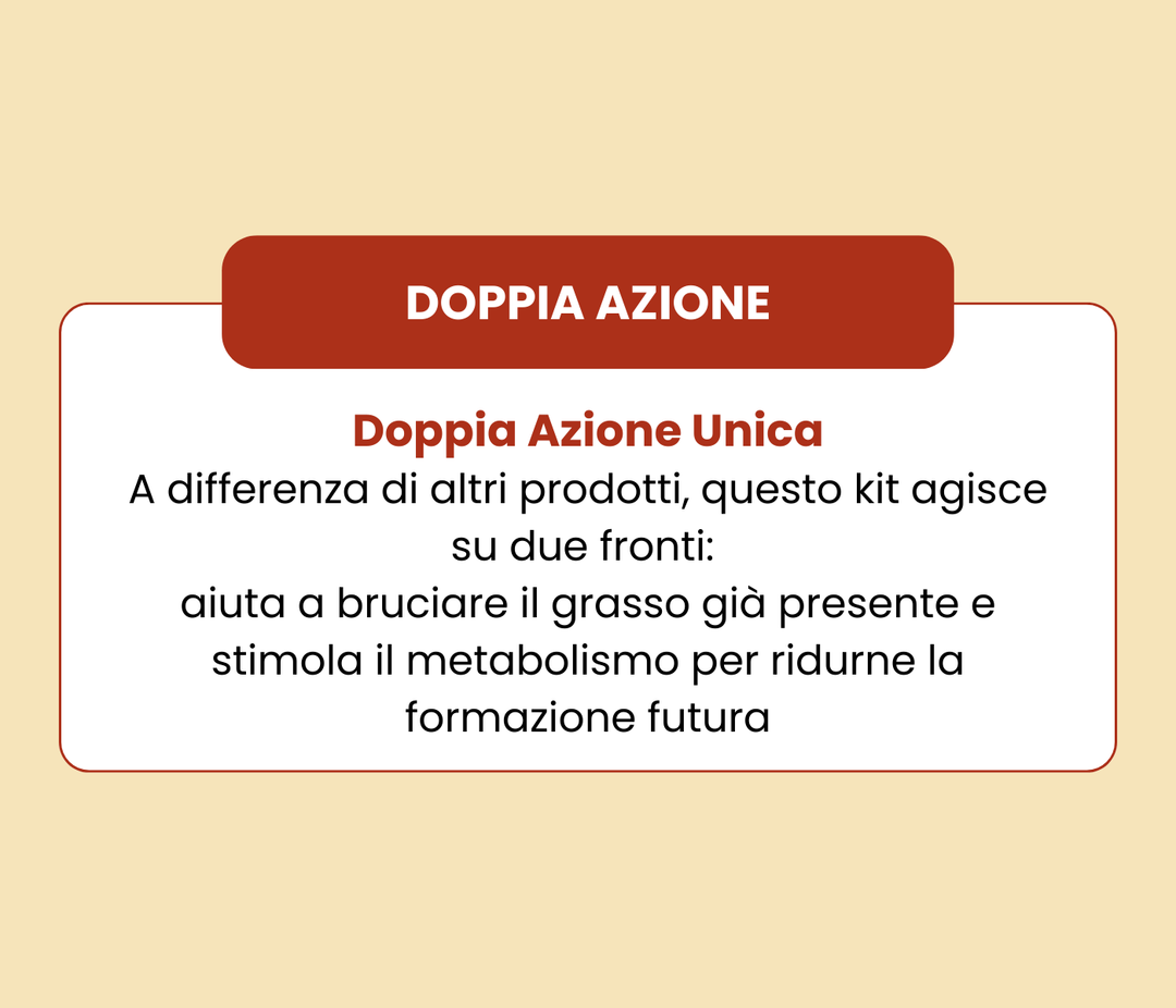 Con CARNITINA e COLEUS FORSKOHLII, agisce per mobilitare i grassi accumulati e trasformarli in energia pronta all'uso
