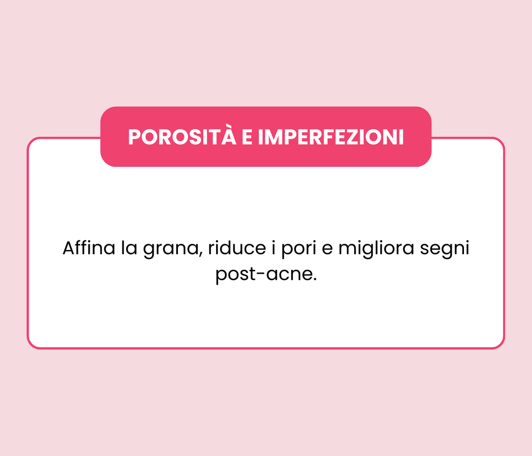 Retinolo puro 0,3% microincapsulato in liposomi, Niacinamide, Gluconolattone (PHA), Acido ialuronico 5 pesi molecolari, Olio di germe di grano e semi di chia.